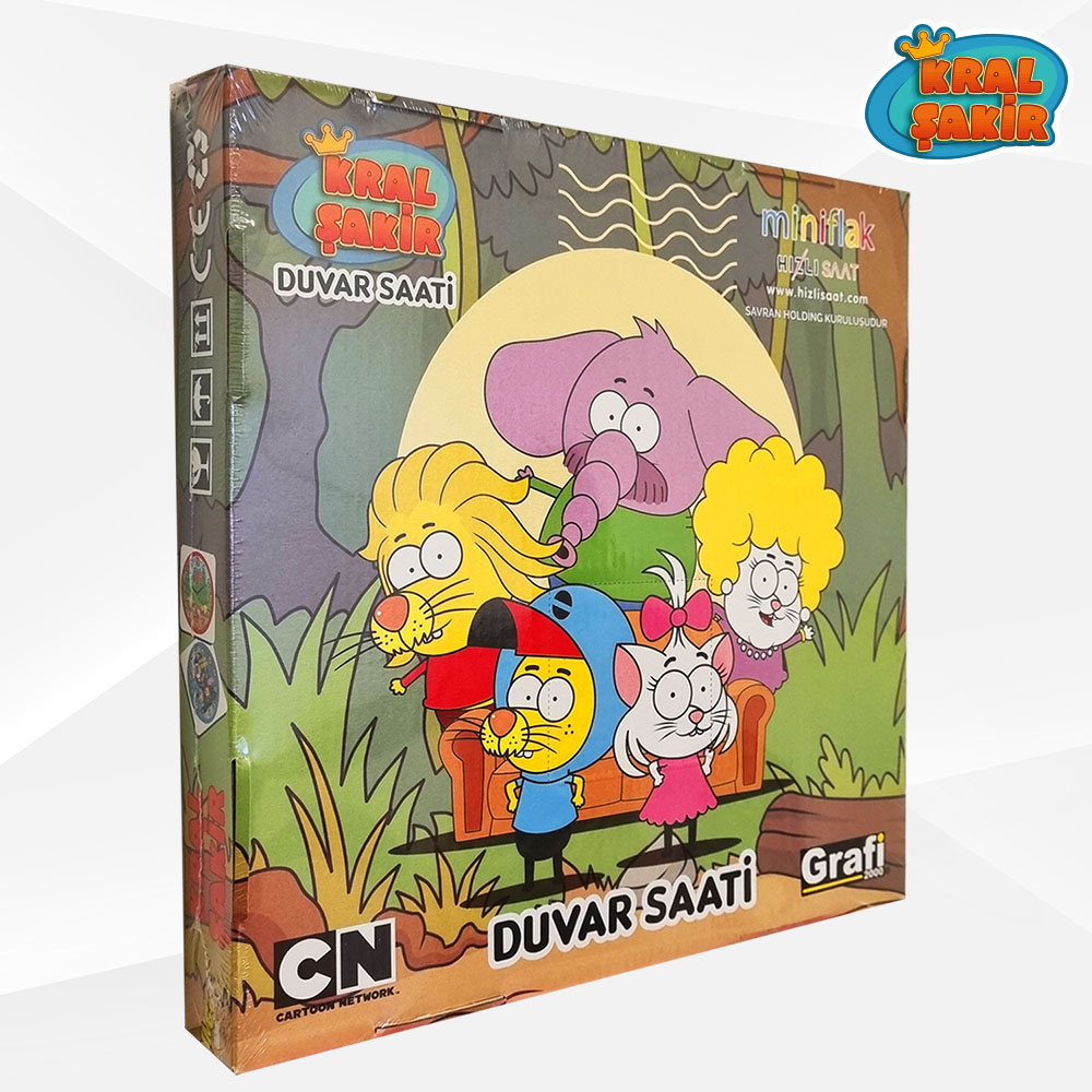 Çocukların Sevdiği Kral Şakir Tasarımı MiniFlak lisanslı Kral Şakir KS-2541 duvar saati, çocukların sevgilisi Kral Şakir karakterinin renkli ve eğlenceli tasarımıyla çocuk odalarına canlılık ve neşe katar. Bu saat, çocukların odasının dekorasyonunu tamamlayan, aynı zamanda zaman öğrenmelerine yardımcı olan eğitici bir aksesuardır.
